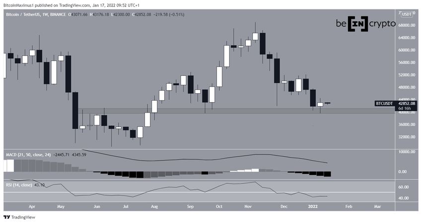 Bitcoin nieznacznie wzrósł w tygodniu 10-16 stycznia. Kurs wzrósł z dołka na poziomie 39 650 USD i zdołał dotrzeć do szczytu na poziomie 44 500 USD. Jednak cały wzrost zakończył się w obrębie poprzedniej niedźwiedziej świecy.