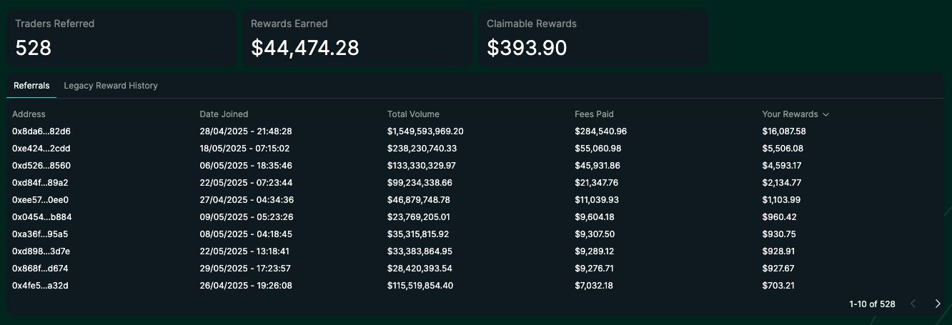 Znany z Twittera detektyw on-chain, specjalizujący się w analizie blockchainowej aktywności, natrafił na podejrzane przepływy środków. Odkrył, że James otrzymał 44 000 USD z poleceń Hyperliquid, z czego 16 000 pochodziło z jednego portfela. Ten portfel miał na koncie ponad miliard dolarów wolumenu i został zarejestrowany przed tym, jak James zaczął promować swój link polecający.