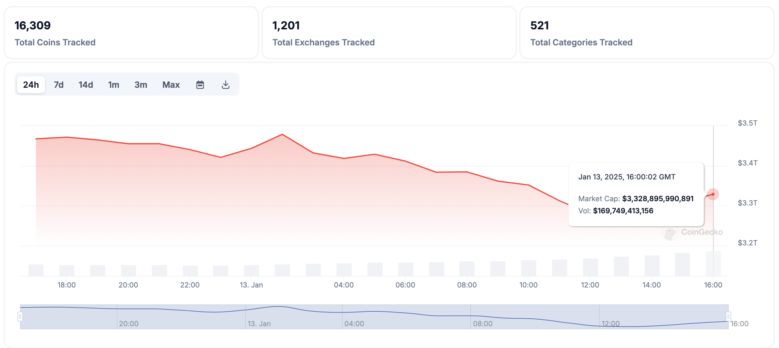 Wykres całkowitej kapitalizacji rynkowej kryptowalut. Źródło: Coingecko