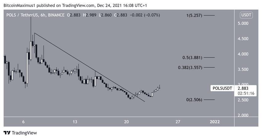 Od 7 grudnia kurs POLS spadał wzdłuż opadającej linii oporu. Doprowadziło to do dołka na poziomie 2,5 USD w dniu 20 grudnia.