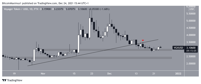 VGX spada od czasu osiągnięcia rekordu wszech czasów (ATH) w dniu 22 listopada. 14 grudnia zalamał się z linii wsparcia i dwa dni później potwierdził ją jako opór.