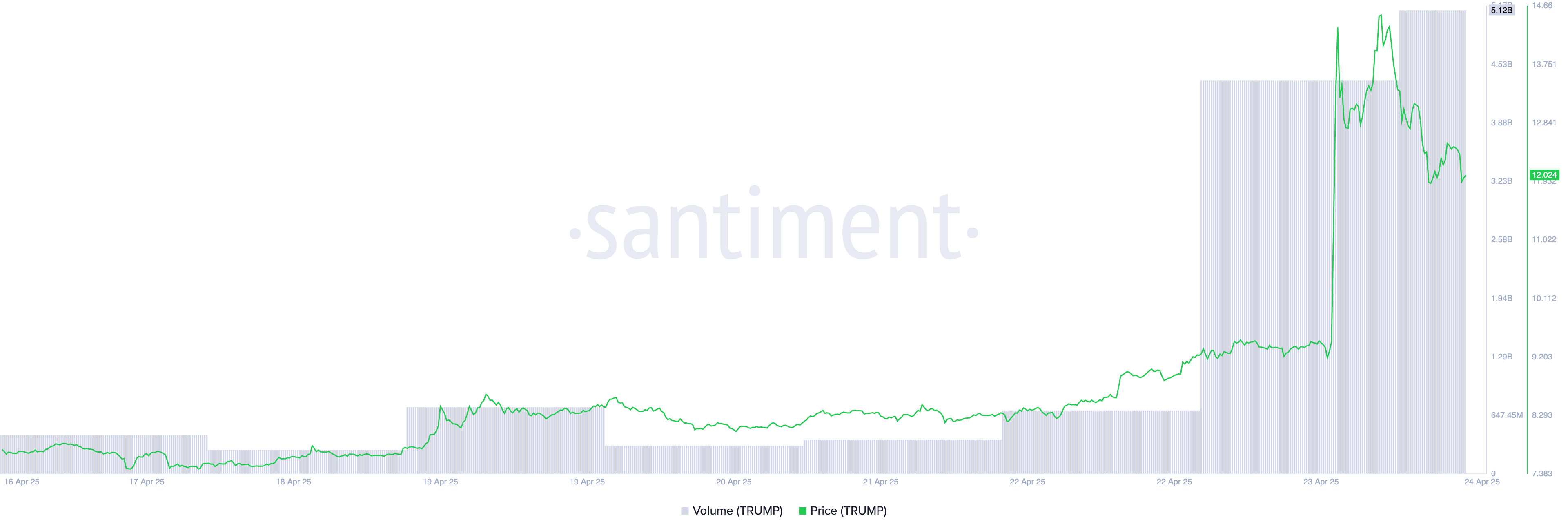 Od ogłoszenia, sentyment rynkowy wokół tokena zmienił się dramatycznie. Wolumen obrotu wzrósł o ponad 500%, osiągając 5,11 mld USD, co oznacza najwyższy jednodniowy wolumen tego memecoina od 14 lutego.
