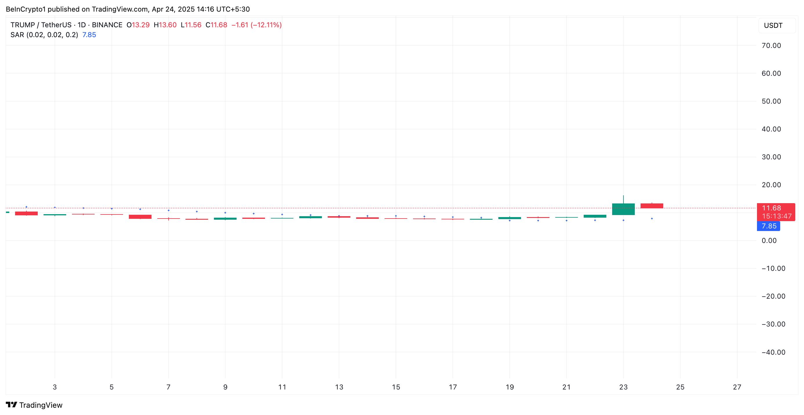 SponsoredNa wykresie dziennym, odczyty z wskaźnika Parabolic stop and reverse (SAR) dla TRUMP wspierają tę optymistyczną perspektywę. W momencie publikacji, kropki tego wskaźnika znajdują się poniżej ceny TRUMP, tworząc dynamiczne wsparcie na poziomie 7,85 USD.