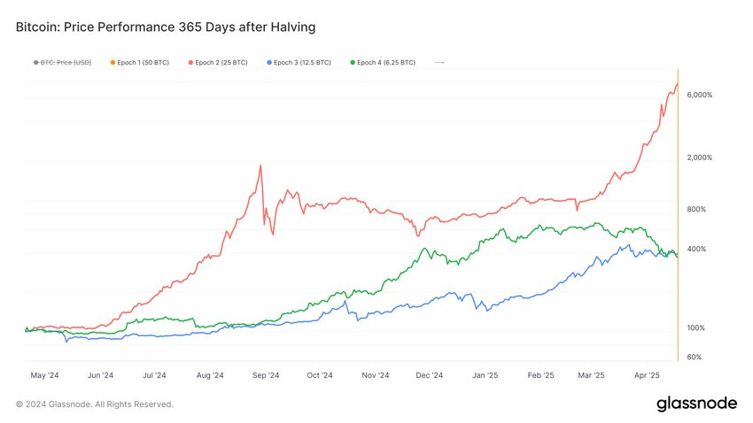 Historycznie rzecz biorąc, największe zyski Bitcoina mają miejsce kilka miesięcy po halvingu, co sugeruje potencjalny przyszły wzrost. Hao Yang, dyrektor ds. produktów finansowych w Bybit, powiedział BeInCrypto: