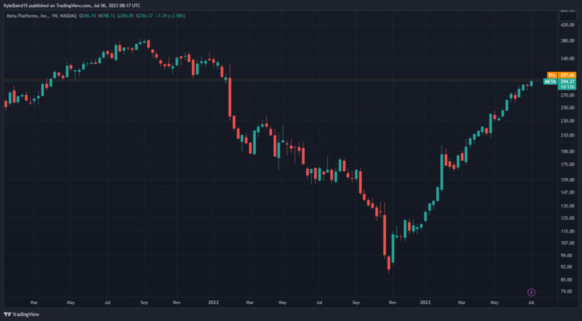 Mark Zuckerberg uruchomił opartą na tekście aplikację do udostępniania w bezpośredniej konkurencji z Twitterem. Debiut pozytywnie wpłynął na akcje Meta, wynosząc je na 18-miesięczny szczyt.