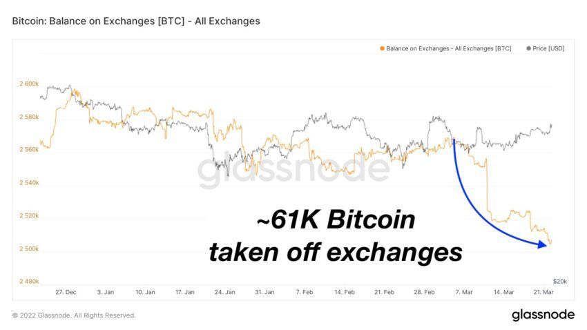 Ilość Bitcoinów i Ethereum opuszczających giełdy znacznie wzrosła w ciągu ostatnich kilku dni, zgodnie z danymi z glassnode i IntoTheBlock. W ciągu ostatnich dwóch tygodni wyprowadzono około 61 000 BTC i 151 000 ETH. Jest to wartość około 2,6 miliarda dolarów w BTC i 492 milionów dolarów w ETH.