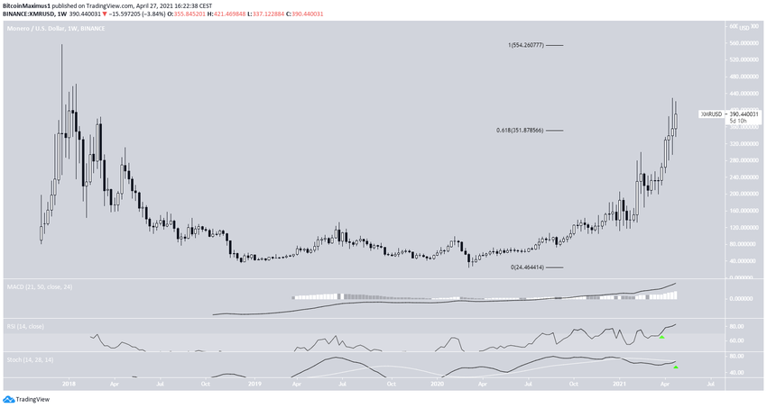 Od tego czasu Monero podjęło kilka prób przejścia w górę. Obecnie kosztuje 390 USD. Mimo to nie osiągnął jeszcze tygodniowego zamknięcia powyżej tego obszaru.