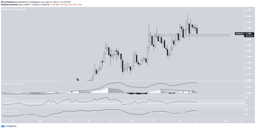 KAVA porusza się w dół od osiągnięcia rekordowej ceny 8,13 USD w dniu 6 kwietnia.