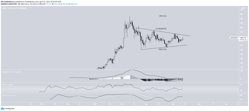 - AAVE jest notowany wewnątrz trójkąta symetrycznego.