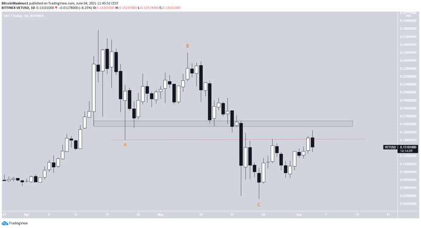 Pomimo tego rozwoju, VET musi jeszcze pokonać główny obszar oporu, który wynosi 0,162 USD.