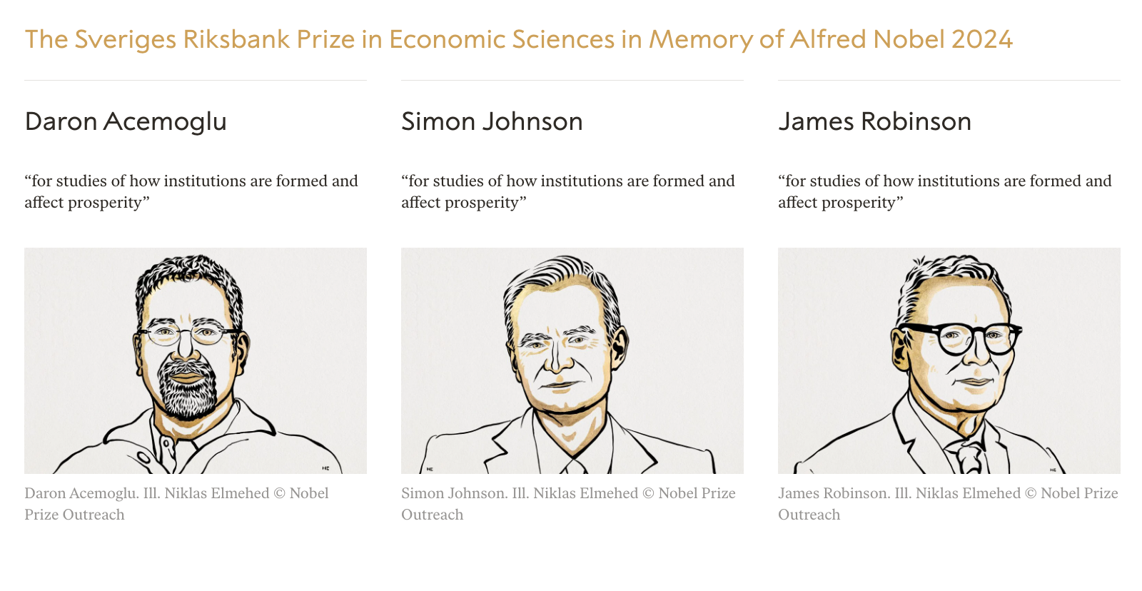 Nagroda Nobla w dziedzinie ekonomii na rok 2024 została przyznana trójce ekonomistów za badania nad różnicami w dobrobycie między krajami. Na liście znaleźli się Daron Acemoglu, Simon Johnson i James Robinson. Vitalik Buterin, pomimo spekulacji, nie dostał w tym roku wyróżnienia.