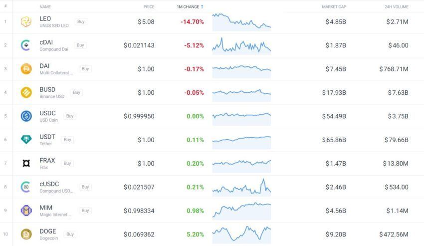 Na czele rankingu outsiderów, z wynikiem -14%, znalazł się UNUS SED LEO (LEO), token giełdy kryptowalutowej Bitfinex. Dla przypomnienia, moneta została wyemitowana przez spółkę matkę platformy handlowej, iFinex. Zespół organizacji zdecydował się na emisję LEO w obliczu zajęcia przez organy regulacyjne części środków Crypto Capital, platformy, która obsługiwała płatności ekosystemu projektu.