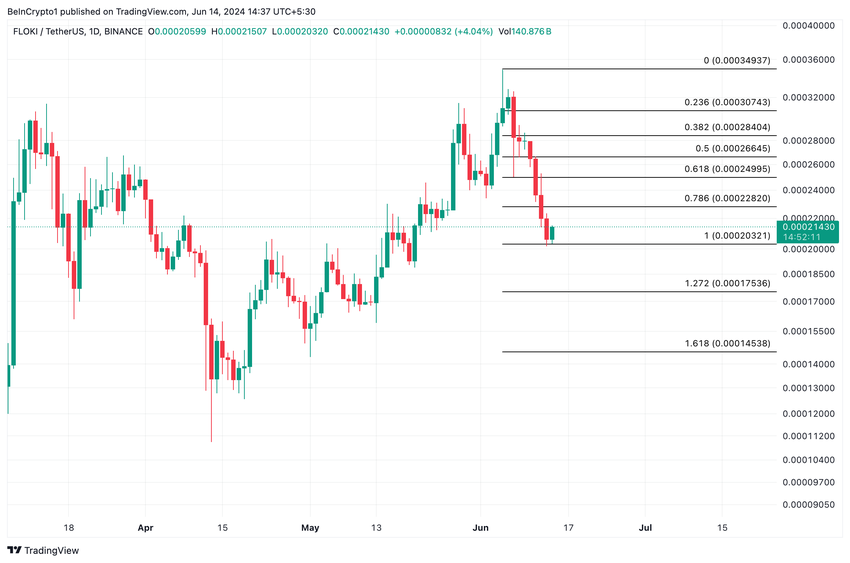 Jeśli popyt na FLOKI będzie nadal poruszał się w dół, to jego wartość może spaść do 0,00020 USD.