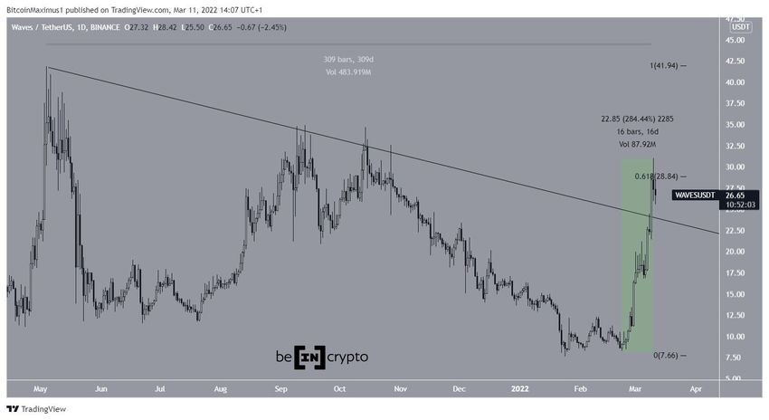 Następnie WAVES rozpoczął gwałtowny ruch w górę 22 lutego i 9 marca wybił się z opadającej linii oporu.