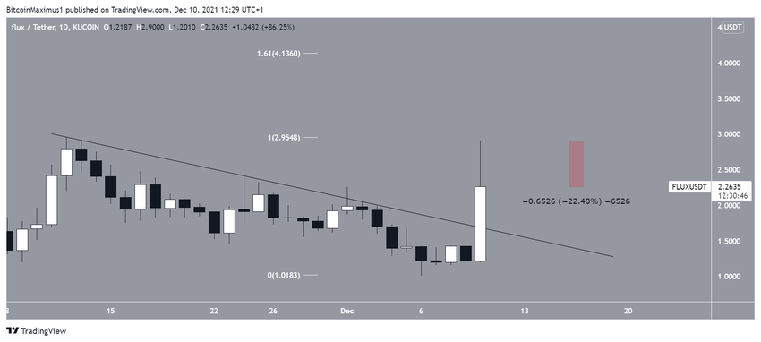 W dniu 10 grudnia FLUX rozpoczął gwałtowny ruch w górę. Doprowadziło to do osiągnięcia szczytu na poziomie 2,90 USD. Było to tylko 0,06 USD poniżej aktualnego rekordu wszech czasów (ATH) na poziomie 2,96 USD.