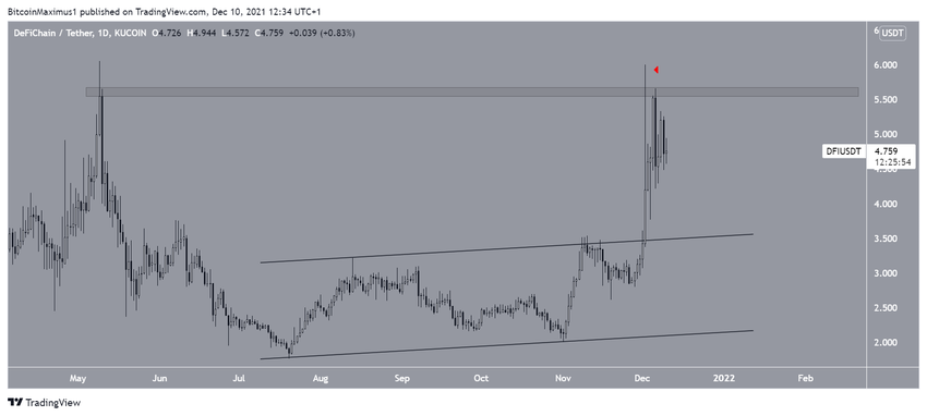 W dniu 2 grudnia DFI znacznie wzrósł i wybił się z równoległego kanału wzrostowego. Jeszcze tego samego dnia kurs osiągnął szczyt na poziomie 6 USD. Jest to nieco poniżej aktualnego ATH na poziomie 6,03 USD.