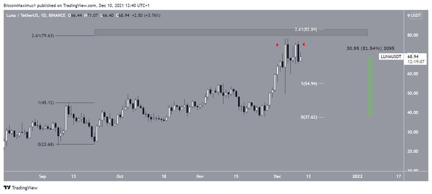 LUNA rośnie od 24 listopada. W dniu 4 grudnia osiągnęła nowy ATH na poziomie 78,22 USD, co stanowiło wzrost o 81,5% od 24 listopada.