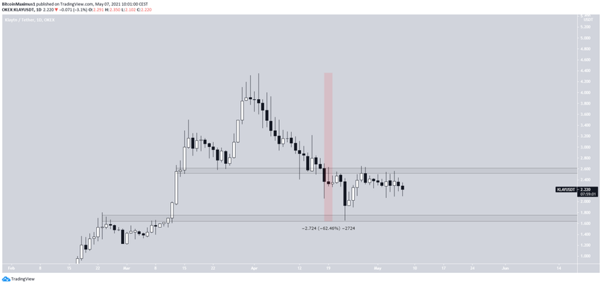 KLAY spadał od 2 do 23 kwietnia, zmniejszając się w trakcie tego procesu o 62%.