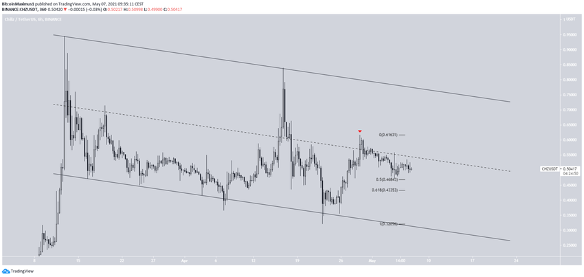 CHZ handluje w ogromnym opadającym kanale równoległym, odkąd 12 marca osiągnął najwyższą w historii cenę 0,944 USD.