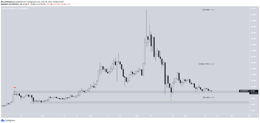 23 maja QTUM osiągnął najniższy poziom 6,37 USD i odbił. Ten ruch i kolejne ceny zamknięcia potwierdziły, że obszar 8,40 USD jest wsparciem. Jest to poziom, który wcześniej działał jako opór w lutym 2021 roku.
