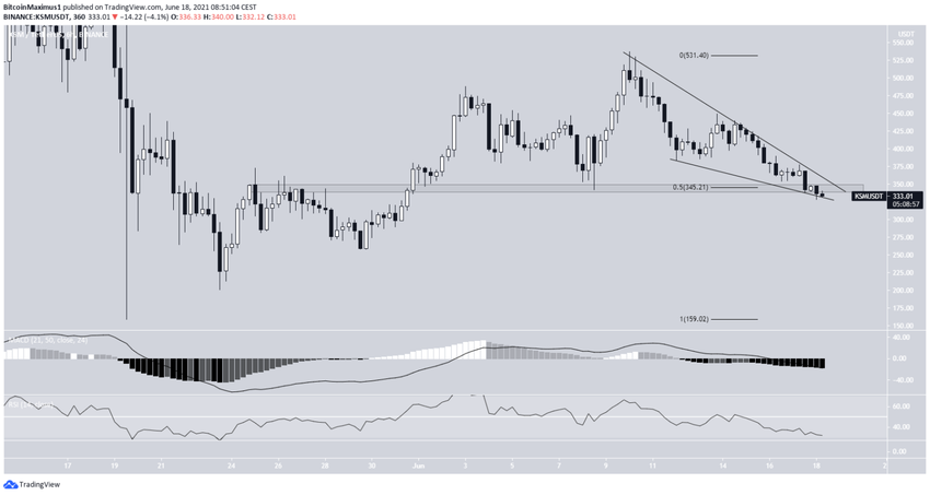Główny poziom wsparcia to 0,052 USD. W połączeniu z opadającą linią oporu tworzy zstępujący trójkąt, który jest zwykle uważany za wzór niedźwiedzi.