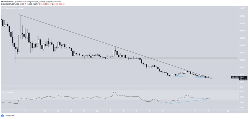 ICP spada wraz z opadającą linią oporu, odkąd 20 maja osiągnął szczyt – 224 USD.
