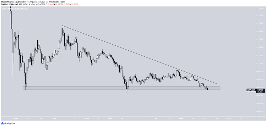 MIOTA odbił się na poziomym obszarze wsparcia 0,69 USD 23 maja. Doprowadziło to do osiągnięcia maksimum 1,48 USD 3 czerwca.
