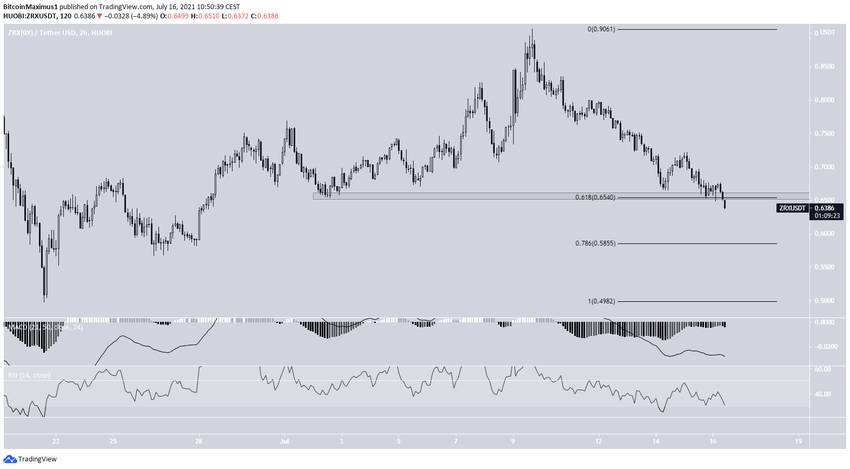 ZRX spada od 9 lipca, kiedy osiągnął szczyt 0,90 USD. Do tej pory spadł o blisko 30%.