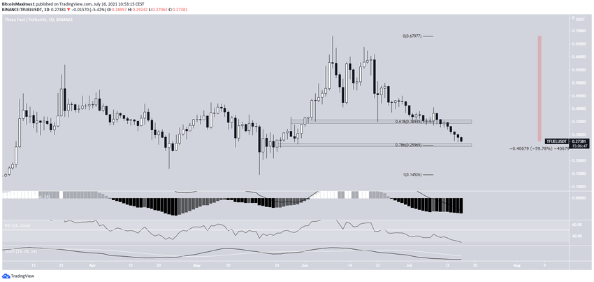 TFUEL spada w dół, odkąd 9 czerwca osiągnął nowe ATH. Do tej pory spadł o blisko 60%. Ponadto TFUEL ustanowił niższy szczyt 18 czerwca.