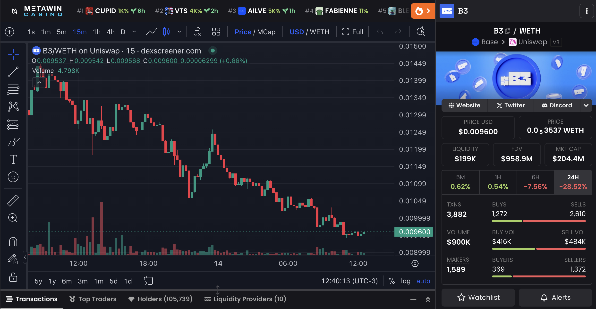 FULLSEND w sieci Solana wzrósł o ponad 260% w ciągu 24 godzin, osiągając kapitalizację rynkową 54 mln USD z ponad 164 000 transakcji. Tymczasem B3 to projekt skoncentrowany na grach w sieci Base. Ma teraz kapitalizację rynkową 203 mln USD, zajmując ósme miejsce wśród największych tokenów na tej sieci, mimo ostatnich wahań cen.