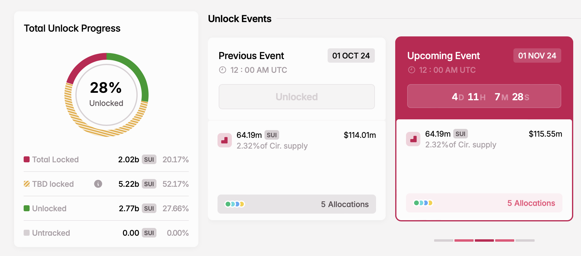 - Liczba odblokowanych tokenów: 64,19 mln SUI