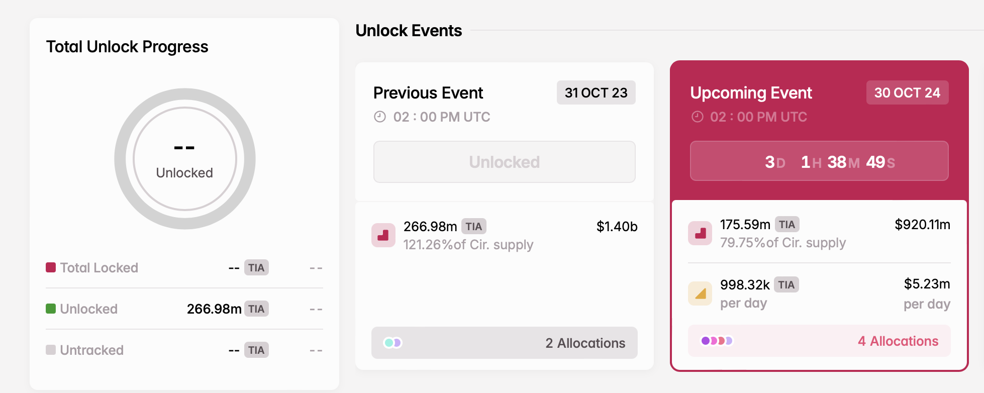 - Liczba odblokowanych tokenów: 175,59 mln TIA