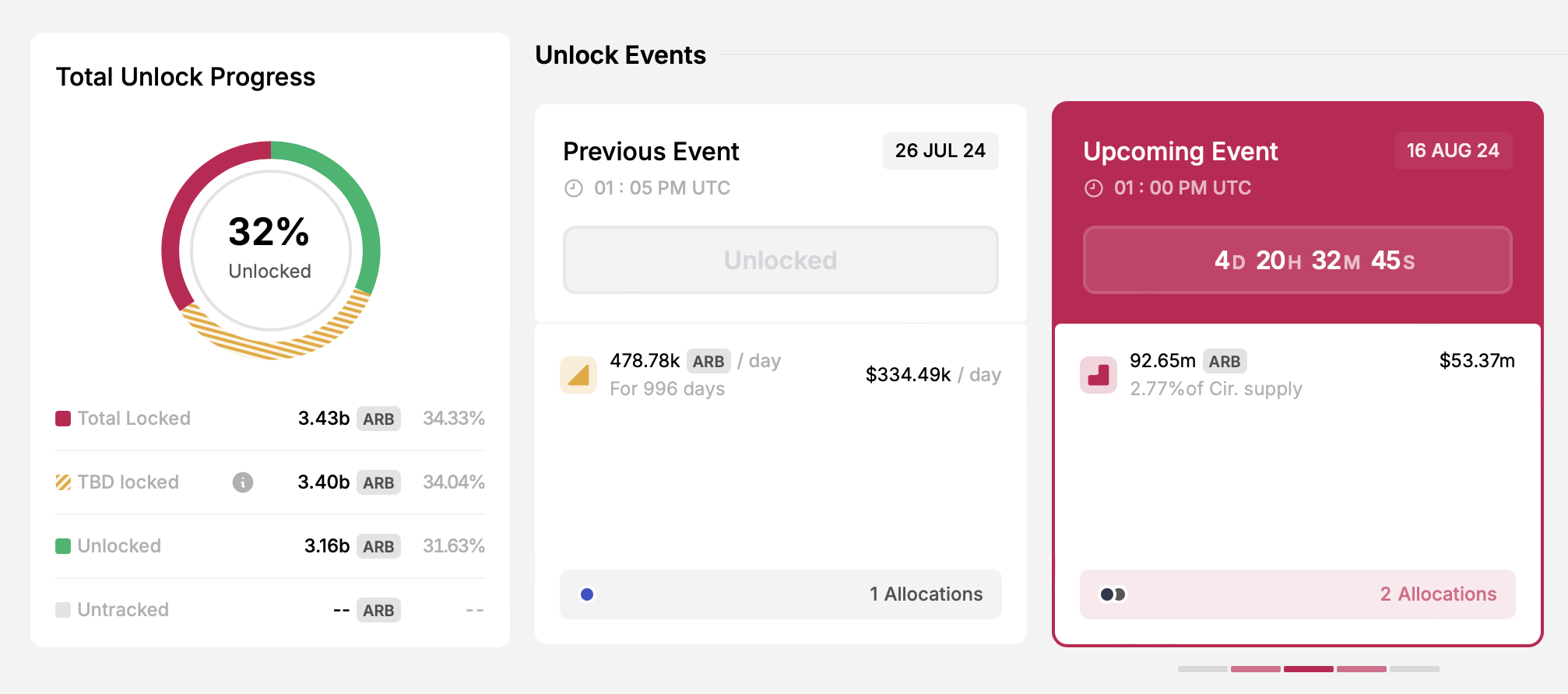 - Liczba odblokowanych tokenów: 92,6 miliona ARB