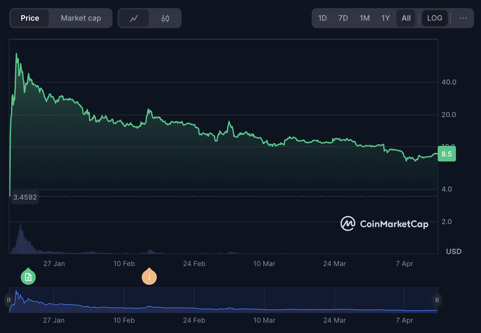 18 kwietnia odbędzie się pierwsze odblokowanie tokenów TRUMP. Zespół projektu otrzyma aż 40 milionów tokenów o wartości około 320 mln USD. To aż 20% całkowitej podaży, która do tej pory była zamrożona.