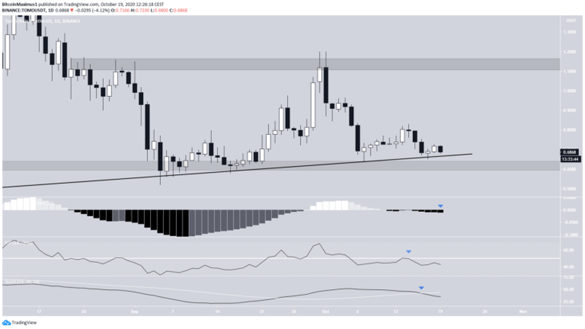 Jednak od czasu opublikowania tego tweeta cena spadła poniżej obszarów wsparcia na 0,75 i 0,70 USD. Po próbie zainicjowania ruchu w górę, TOMO został odrzucony przez obszar 0,70 USD.
