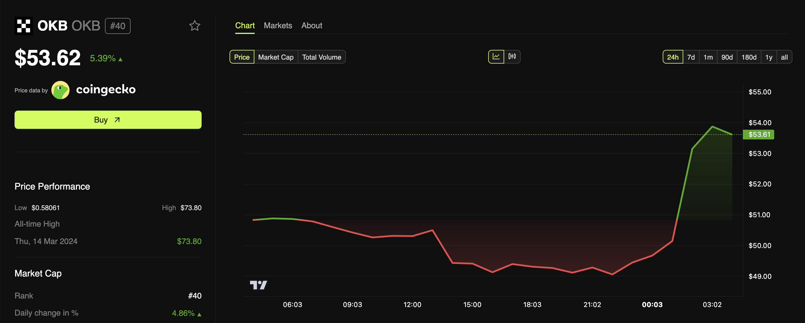 Warto zauważyć, że wiadomość pozytywnie wpłynęła na OKB. W momencie pisania, token był notowany po 53,6 USD, co oznacza wzrost o 5,39% w ciągu ostatniego dnia. To osiągnięcie kontrastowało z szerszym rynkiem, który spadł o 3,2% w tym samym okresie.