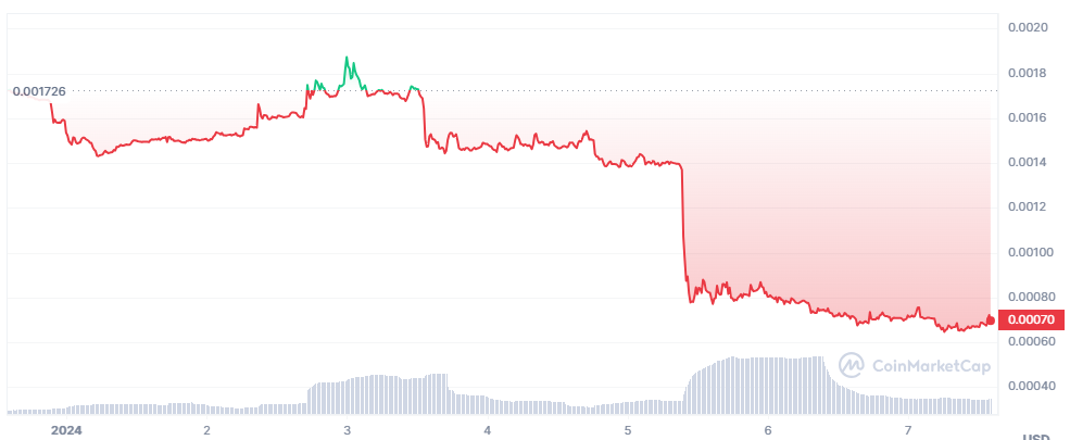 Biorąc pod uwagę obecne notowania FAME można przypuszczać, że większość zwolenników i zainteresowanych pogodziła się ze swoją inwestycyjną porażką. Przedstawiciele projektu z pewnością “nie dowieźli” obietnic, czego potwierdzeniem jest między innymi wykres poniżej. Po ogłoszeniu delistingu przez OKX, token FAME zaliczył spadek o niespełna 60%, do wartości 0,00070 USD.