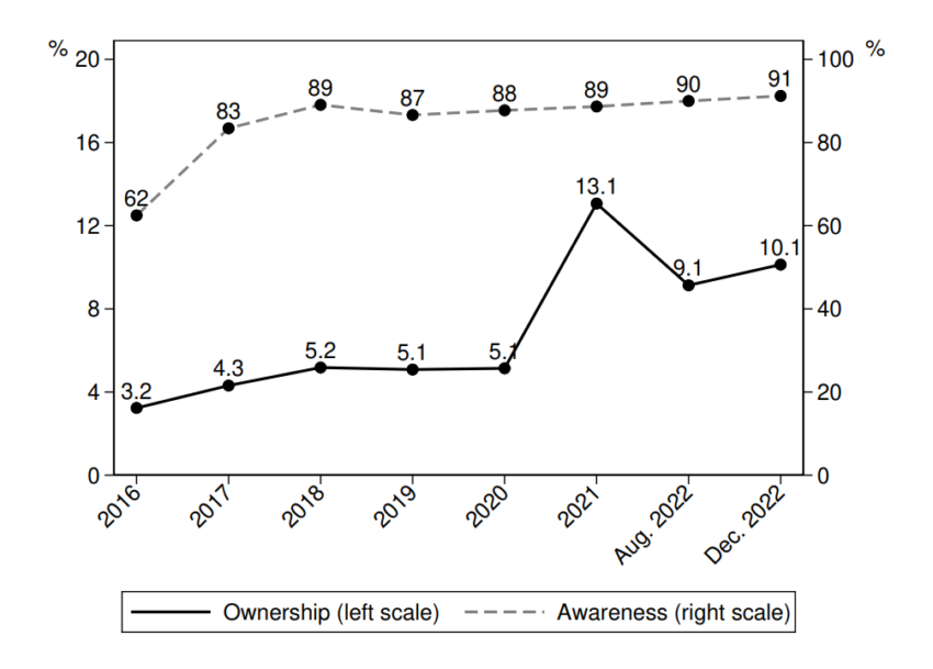 Dane BoC ujawniają zahamowanie adopcji kryptowalut po ogromnym wzroście i ożywieniu rynku obserwowanym w 2021 roku.