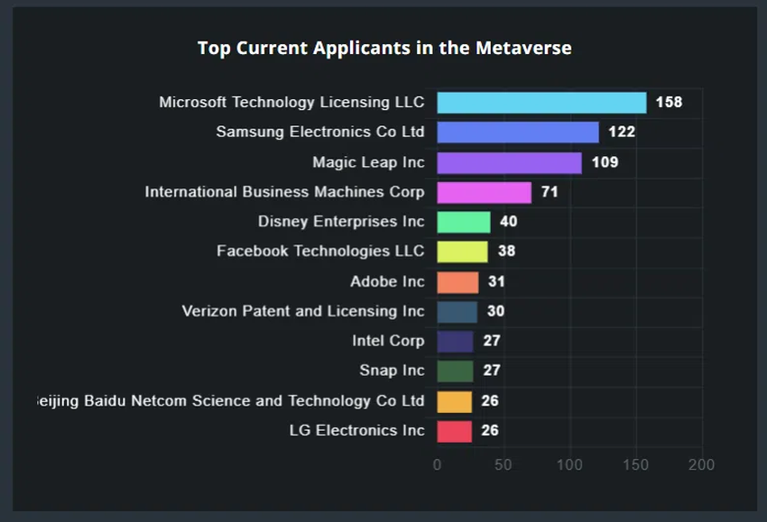 W ciągu ostatnich pięciu lat liczba wniosków patentowych i dotacji zawierających koncepcje związane z metaverse rosła, ponieważ firmy konkurowały o zajęcie miejsca w tej nowej niszy.