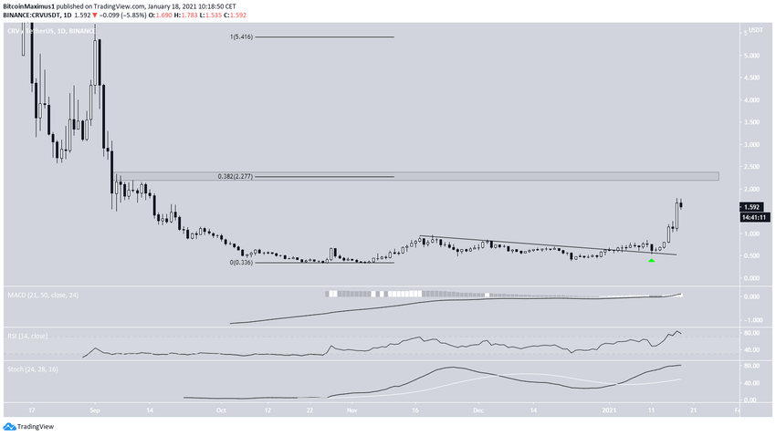 Najbliższy obszar oporu znajduje się na 2,27 USD (poziom zniesienia 0,382 Fib). Podobnie jak BQX, oczekuje się, że CRV osiągnie ten opór.