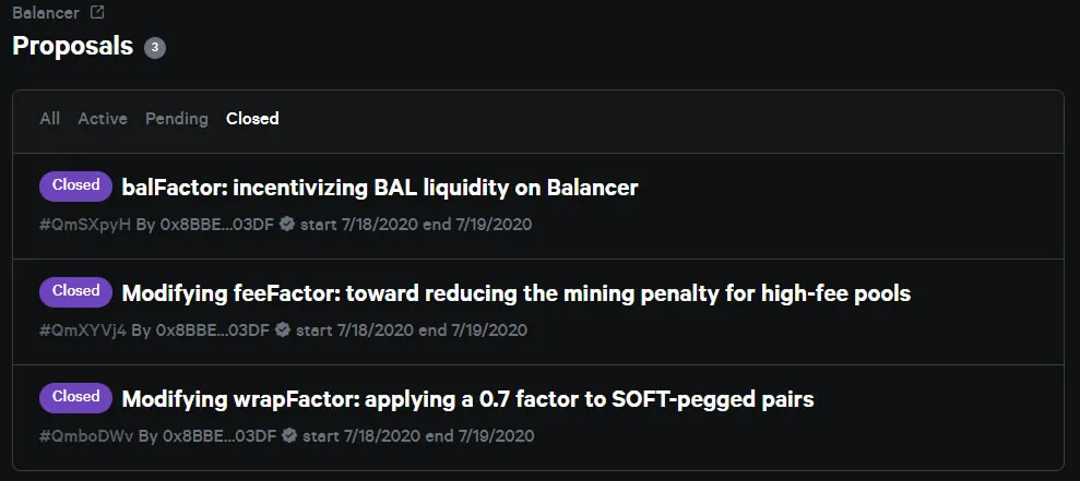 Trzy propozycje dotyczące tego wyliczenia zostały poddane pod głosowanie w weekend, kiedy Balancer uruchomił swoje narzędzie do zarządzania.