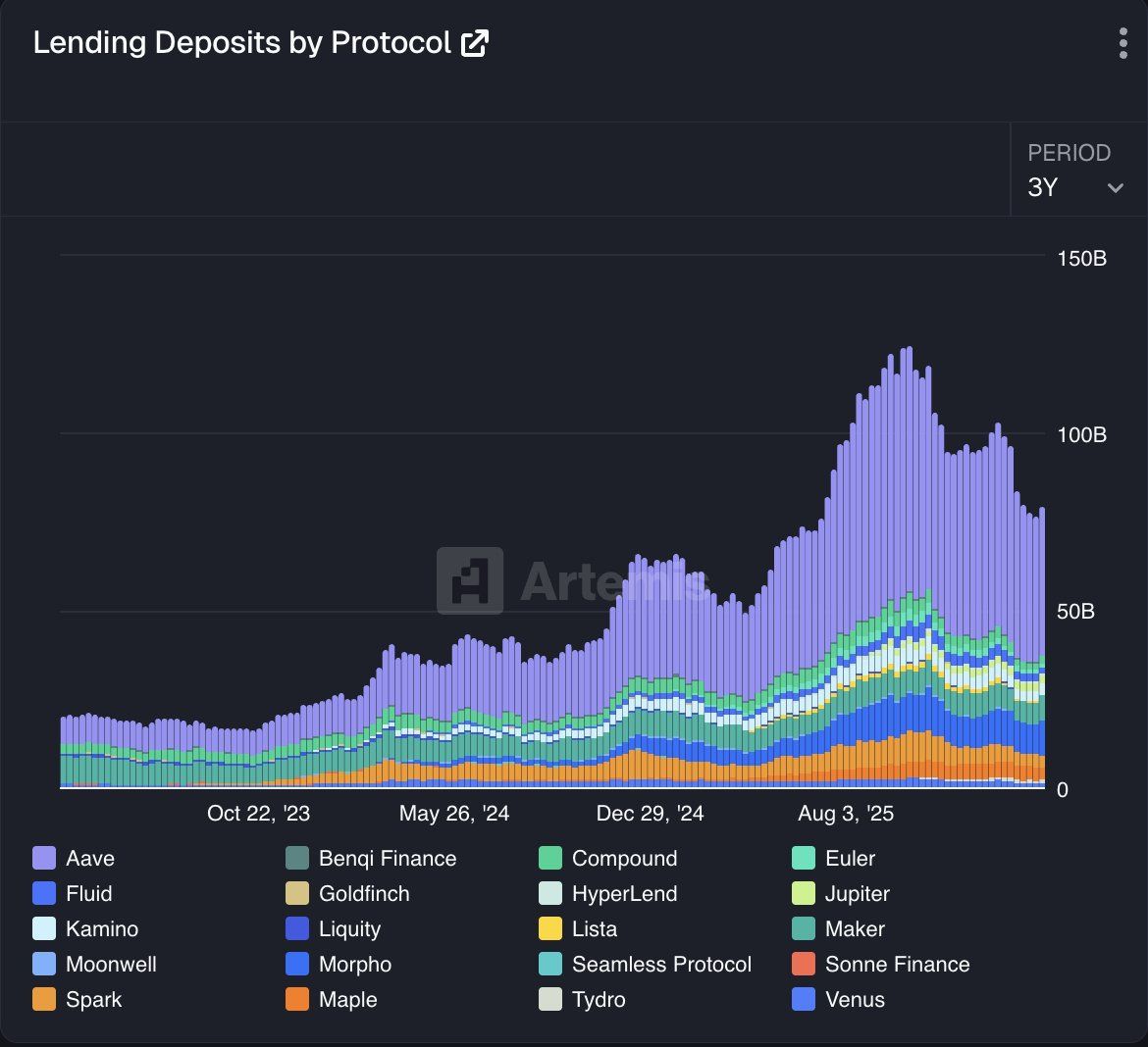 Według raportu wartość depozytów w protokołach lendingowych spadła z 125 mld do 79,6 mld USD. Oznacza to spadek o około 36% od października.