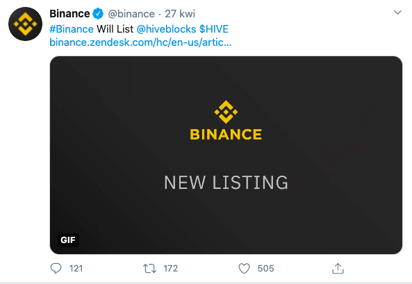 W oświadczeniu wydanym wczoraj 27 kwietnia największa giełda kryptowaluta na świecie, Binance, ogłosiła zalisotwanie Hiva na swojej platformie. Zgodnie z postem na blogu, Binance ma oferować wsparcie dla trzech par HIVE – HIVE / BTC, HIVE / BNB i HIVE / USDT.