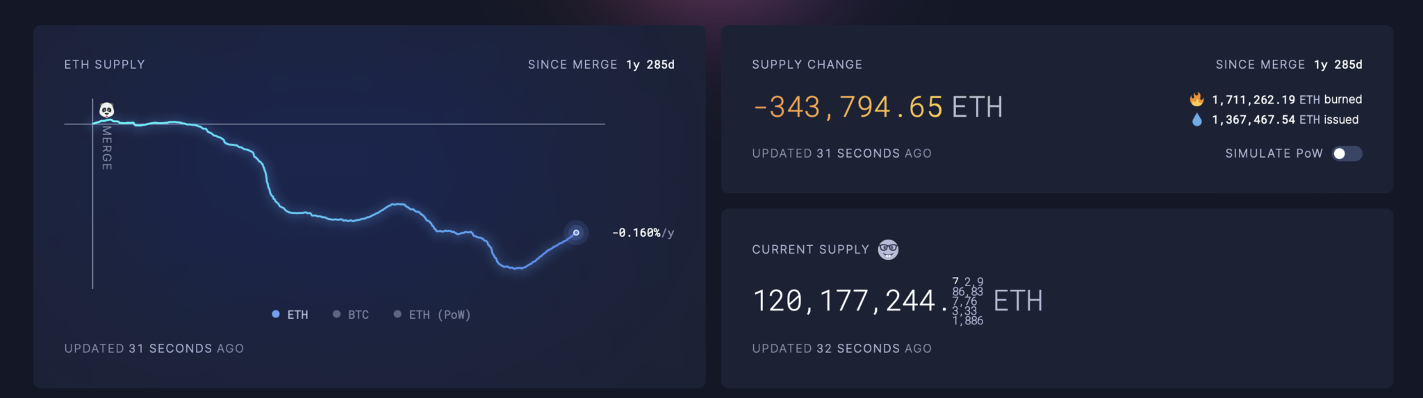 Odkąd 15 września 2022 r. Ethereum przeszło na algorytm Proof of Stake (PoS), całkowita podaż kryptowaluty zmniejszyła się o 343 tys.