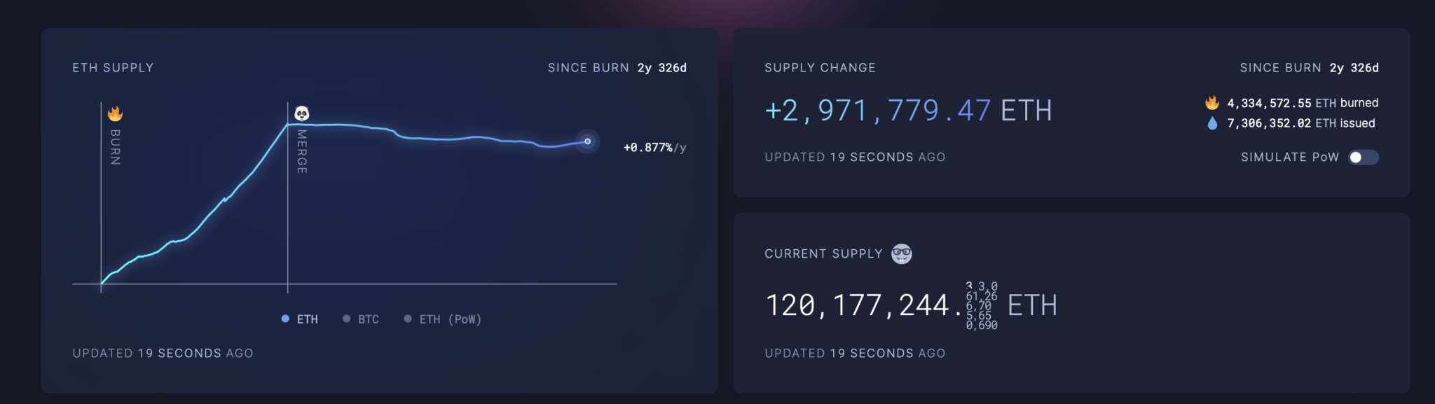 Jednocześnie, po uruchomieniu mechanizmu burn podczas hardforka London na początku sierpnia 2021 r., podaż wzrosła o 2,97 mln monet. Na dzień dzisiejszy łączny wolumen spalania osiągnął 4,33 mln ETH.