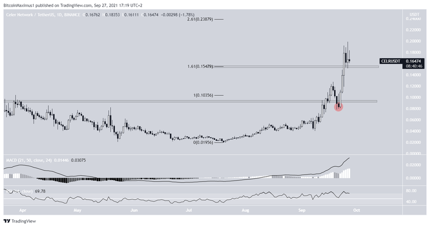 Celer Network (CELR) osiągnął rekord wszech czasów (ATH) w dniu 26 września, ale wkrótce potem został odrzucony.