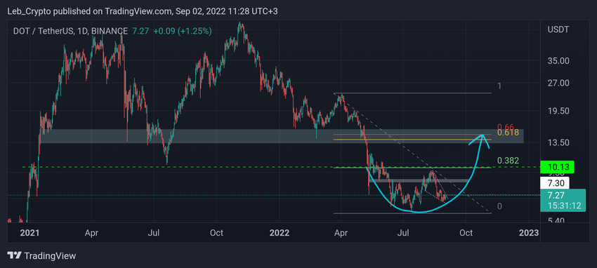 Trader kryptowalutowy @Leb_crypto opublikował na Twitterze wykres Polkadot, stwierdzając, że możliwe jest, że zobaczymy wzrost ceny o 100%.