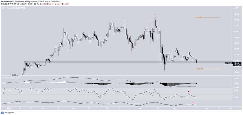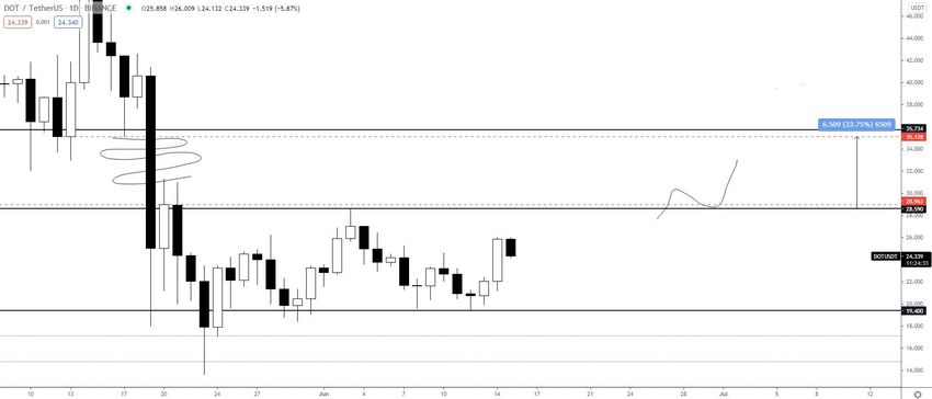Polkadot (DOT) próbuje utrzymać się powyżej długoterminowego obszaru wsparcia na poziomie 19 USD.
