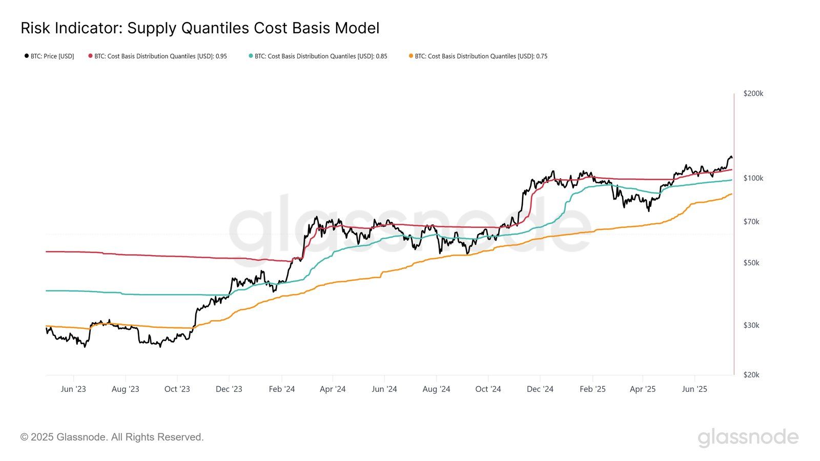 „Obecna cena jest wyższa niż 95% historycznych cen zakupu (cost basis). Takie momenty często wywołują zwiększoną realizację zysków przez coraz szerszą grupę posiadaczy, co z czasem prowadzi do redystrybucji podaży na wyższe ceny zakupu.”