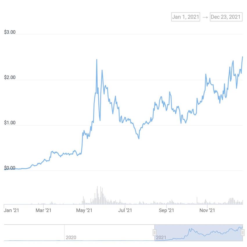 W momencie pisania tego tekstu altcoin handlował za 2,68 USD, według CoinGecko. Zajmuje 14 miejsce w rankingu kapitalizacji rynkowej z 18,4 miliardami dolarów.
